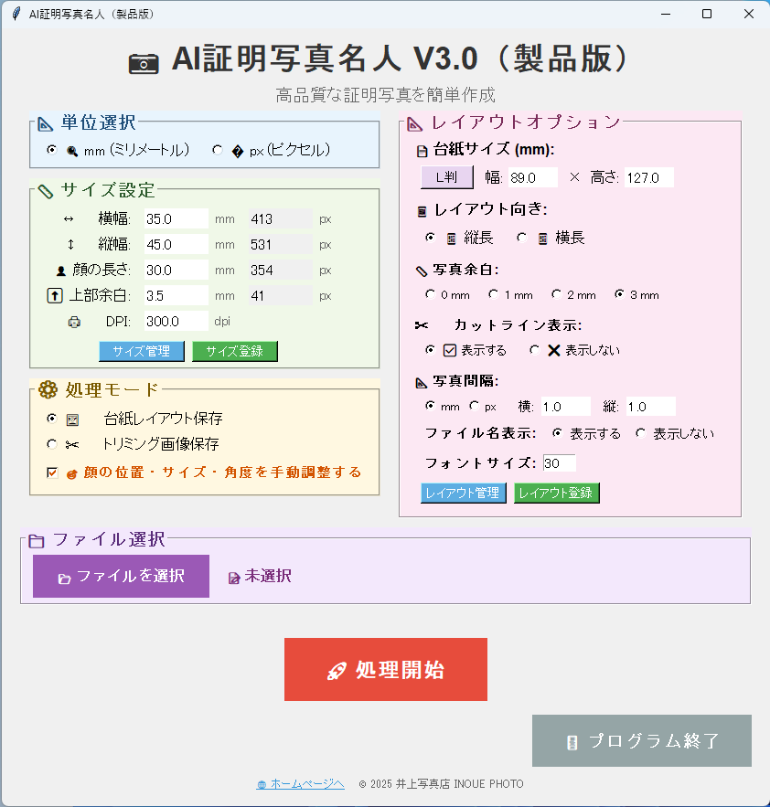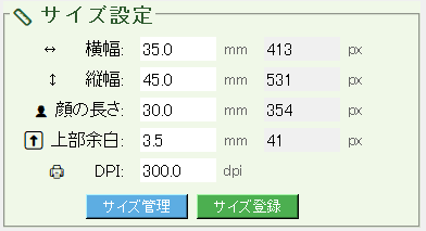 - 顔サイズ、頭上余白、画像の出力サイズをmmまたはpxで指定可能