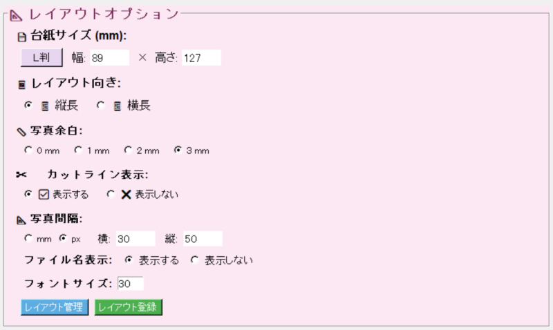 - 写真台紙サイズを自由に設定可能
